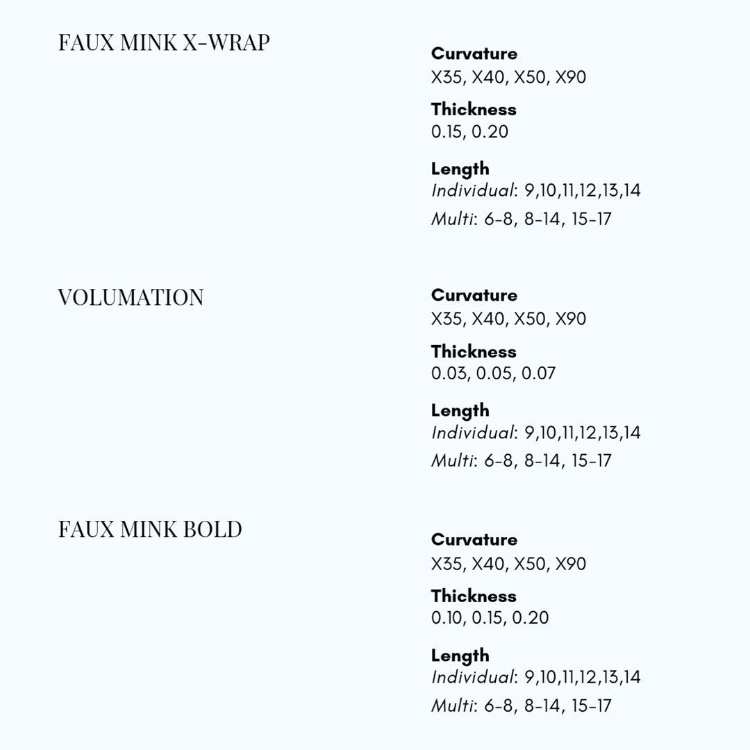 <li> Obtenez plus de texture, de densité et de volume dans toutes les conceptions d'application en appliquant en toute sécurité des extensions de cils de 0,03 mm, 0,05 mm et 0,07 mm de diamètre sur un seul cil naturel.</li>